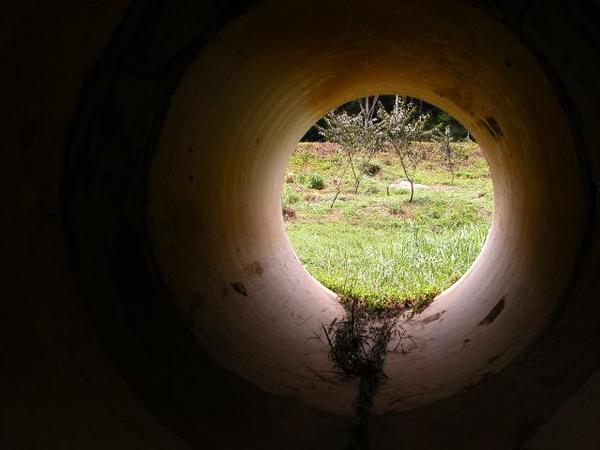 天曉得為什麼,當時我爬進了暨大四果坑聯外道路旁的排水管裡,
