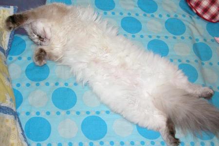 膽小不如鼠的Mia竟可以聽著狂暴的黑死金屬樂睡成這副德性......