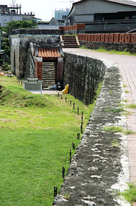 在到達蓮池潭之前,我經過了位在左營的鳳山舊城古蹟。這地方也在我隨性規劃(所謂隨性規劃就是可有可無的意思)的行程中,於是我就特地過去看看。雖然所謂舊城,也只是一堵牆加上旁邊堆滿黃色塑膠拒馬的城門的建築物,但是城牆下有個牌誌清楚寫著這個城牆往日的風華與歷史,在這裡贅述不如讓有心多認識它的人自己去拜拜咕狗大神,且容我開始好好聊我和蓮池潭的記憶。