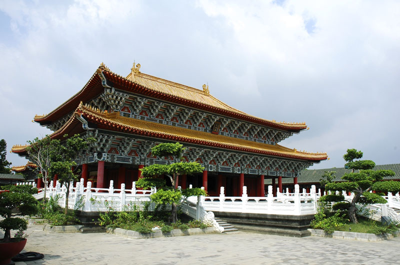 從虎口出來之後,我繼續跳上機車沿著潭邊繞,路上經過了春秋閣(兩座較小的塔,塔前也有條龍,上面站著觀音)以及某某神明大帝的水中巨像(這是近年才加蓋的),最後到達了由四面紅牆圍起的左營孔廟。剛到門口時,我還在牆邊撞見了身著韓國傳統服飾在那拍照的一對男女(女女?),很有意思。由於我和孔夫子有許多理念不合的地方,故也不畫蛇添足地介紹孔夫子生平或孔廟細節了;所有詳情咕狗大神都會告訴你,而我想說的只有湖畔的孔廟十分雄偉清幽,外地來的觀光客不妨去看看,以上。