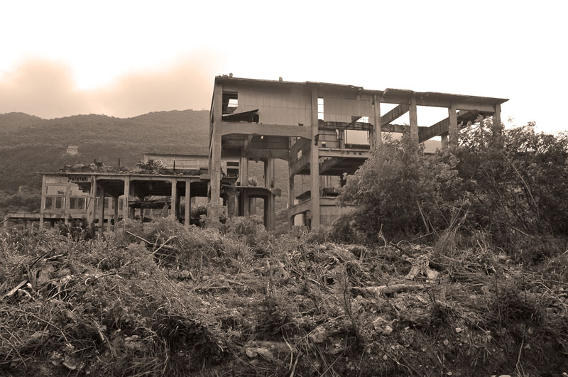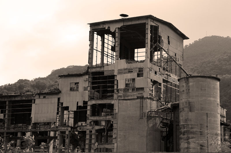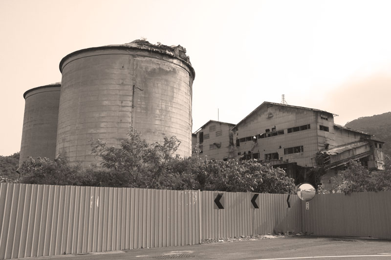 其實要去蓮池潭有更好走的大道,不過我刻意選擇鼓山路,因為傳說中高雄數一數二「雄偉」的巨型工業遺跡台泥高雄廠廢址,就在鼓山路上。究竟我為什麼會對廢墟有興趣呢?幾乎每個知道我嚮往廢墟、常常風塵僕僕特地去找廢墟的人,都說我有病,不過我倒是不以為忤。我向來喜歡那種滿載著過去的繁華記憶與不堪傷痕的巨型遺跡(如金字塔、吳哥窟、帕特農神殿),也喜歡傻傻地徘徊在被榨乾最後一滴利用價值後便被遺棄的文明垃圾山(如金瓜石十三層選礦場、三芝飛碟屋群之類的廢墟)中,像是一個多愁善感的文藝青年,傻坐在被遺棄於社會角落,落魄、老邁、備受嫌惡的過氣花魁身邊,思索著文明、社會這些我永遠搞不懂的東西究竟有什麼意義,也希望能在被淘汰的記憶灰非湮滅前,紀錄下一點他們曾經存在的證明。