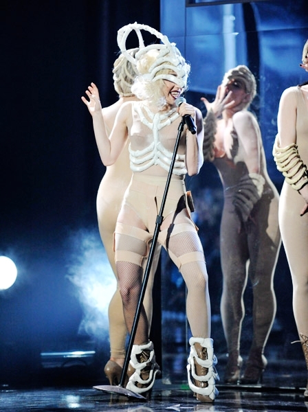 請問哪來的義肢?她兩隻腳不是都好好的嗎?這場演唱會是2009年年底美國音樂大獎(American Music Awards)上的演出照片,而現在一經是2010年年底了。前陣子Lady Gaga出席2010年MTV音樂獎時穿著牛肉裝,當時不是還鬧得沸沸揚揚嗎?牛肉裝事件我不予置評,重要的是2010年雙腳健全,2009年會一腳殘缺?完全不可能嘛。
