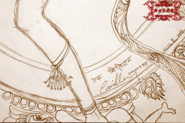 8. 踩著侏儒惡魔的右腳象徵破除侏儒惡魔所代表的愚昧無知。(注意到火輪上的那行印度文嗎?為了慶祝人氣破百萬,我還特地查了一下「一百萬」怎麼寫呢哈哈!如果寫錯了敬請指正XD)