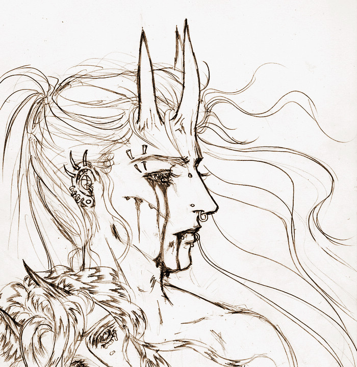 既然標題是獵鬼,為什麼我不選擇威風凜凜的正義獵鬼人來畫,偏偏要畫被獵的鬼呢?當然,首先最重要的原因就是我無法掌握自己究竟會畫出什麼東西,要我畫帥氣的獵鬼人恐怕大大超出我羞澀的能力範圍(羞)。