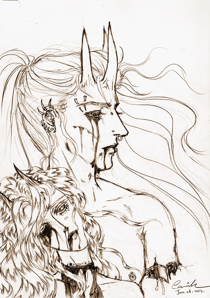 噢對了,雖然個人認為這張畫的尺度已經夠溫良恭儉讓了,完全不值大驚小怪,但誠如標題的註明,這張畫有點血腥噢!您目前看到的是「和諧版」的部分,怕血的未成年的請勿繼續閱讀,不要看了完整的圖之後才大喊「好可怕喔嚇死我了妳真變態畫這是什麼鬼東西」喔。