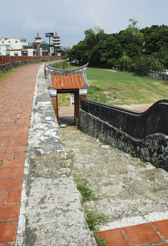 在到達蓮池潭之前,我經過了位在左營的鳳山舊城古蹟。這地方也在我隨性規劃(所謂隨性規劃就是可有可無的意思)的行程中,於是我就特地過去看看。雖然所謂舊城,也只是一堵牆加上旁邊堆滿黃色塑膠拒馬的城門的建築物,但是城牆下有個牌誌清楚寫著這個城牆往日的風華與歷史,在這裡贅述不如讓有心多認識它的人自己去拜拜咕狗大神,且容我開始好好聊我和蓮池潭的記憶。